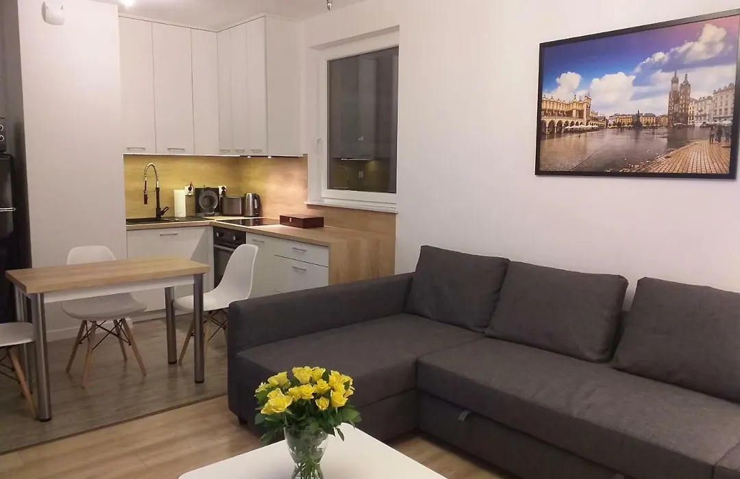 ガレリア・クラクフ・モールから徒歩で20分以内で行けるロブゾウ地区の44m²のAm amentアパートは、6人の顧客を収容します。 ランドリー、24時間警備体制とショッピングサービスの他に無料の専用駐車場、サンデッキと理容室は楽しみます。